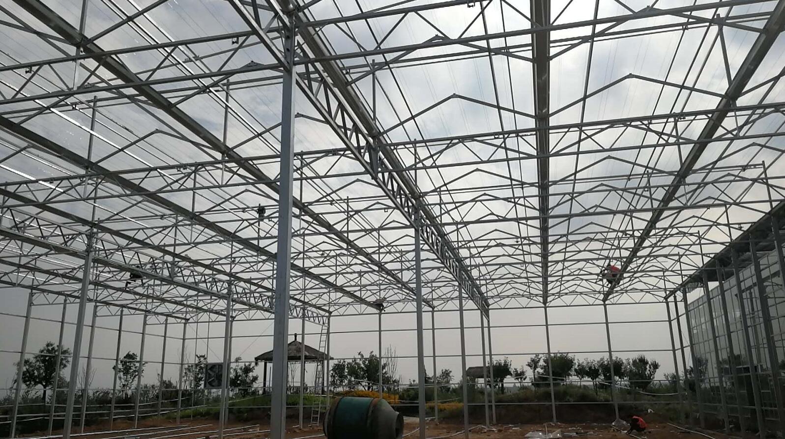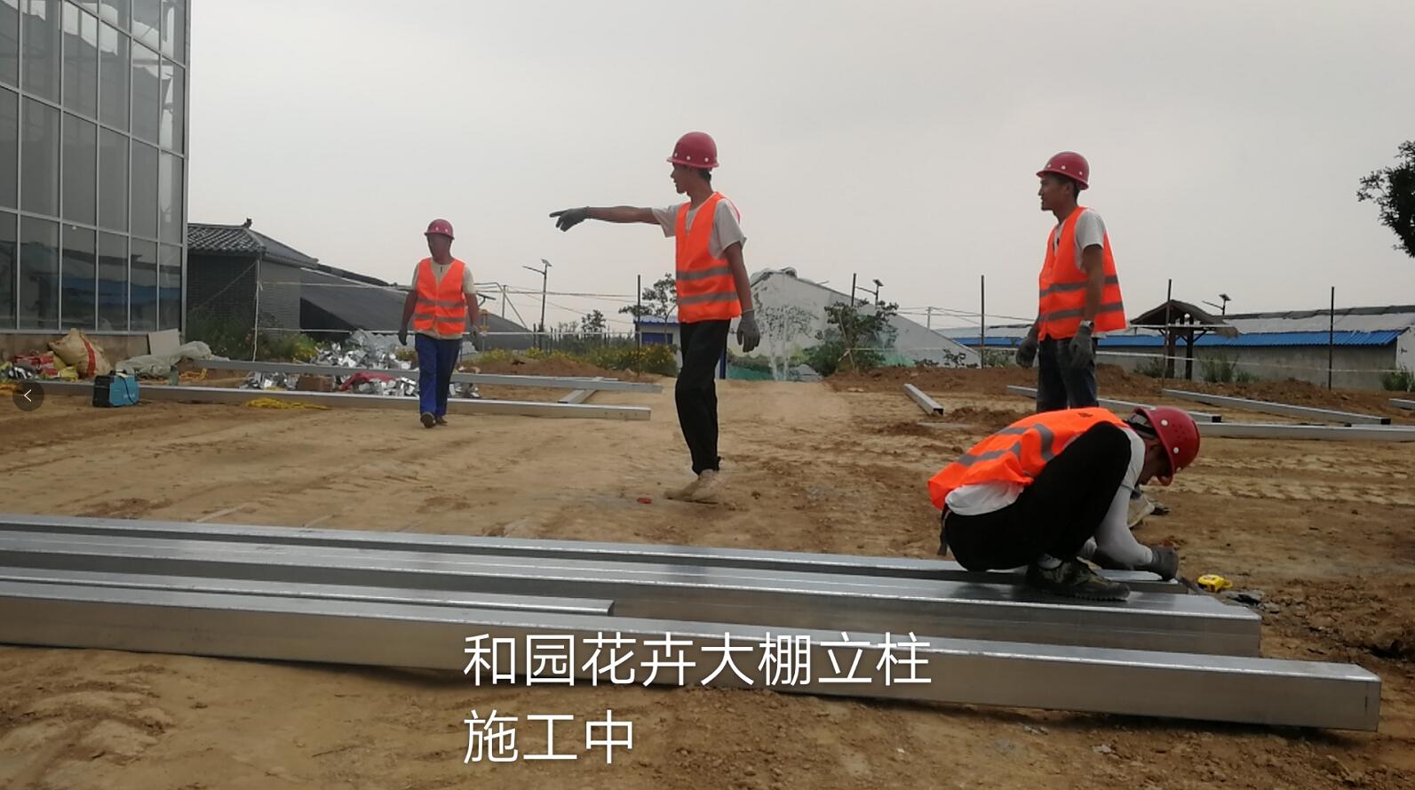 白水縣杜康鎮(zhèn)和園花卉玻璃棚施工現(xiàn)場(chǎng)!
