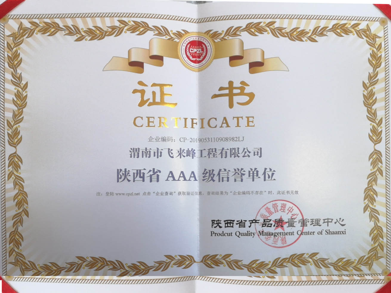 陜西AAA級(jí)信譽(yù)單位