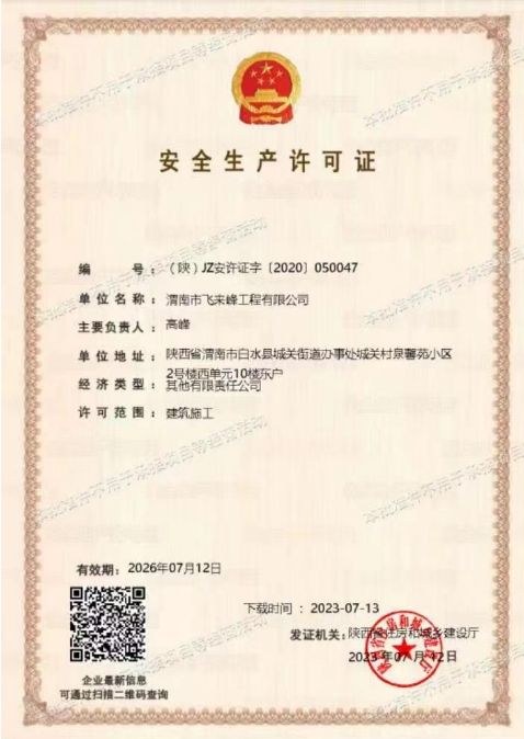 渭南市飛來峰工程有限公司營業(yè)執(zhí)照